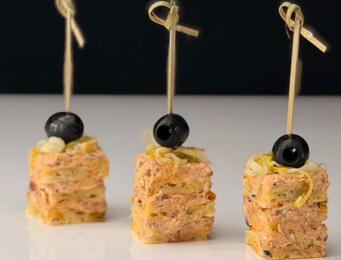 — С вялеными томатами , маслинами , сочными томатами черри и красной рыбкой